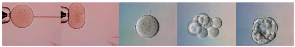 受精卵開始進行細胞分裂,細胞數逐漸成長,胚胎培養第四天會進行細胞間的融合,到第五天形成囊胚。而囊胚像一顆像球一樣,由內細胞團與滋養層細胞組成。