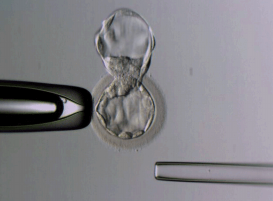 找出卵子最佳的受精時間後,胚胎師會借助顯微系統的機械手臂操作極細的玻璃pippet,由機械手臂代替雙手握住卵子、抓住精蟲;利用單一精蟲顯微注射(ICSI)的技術,找尋精蟲並活化卵子,讓卵子與精蟲受精是胚胎師最重要的任務,因為這是生命的起源。